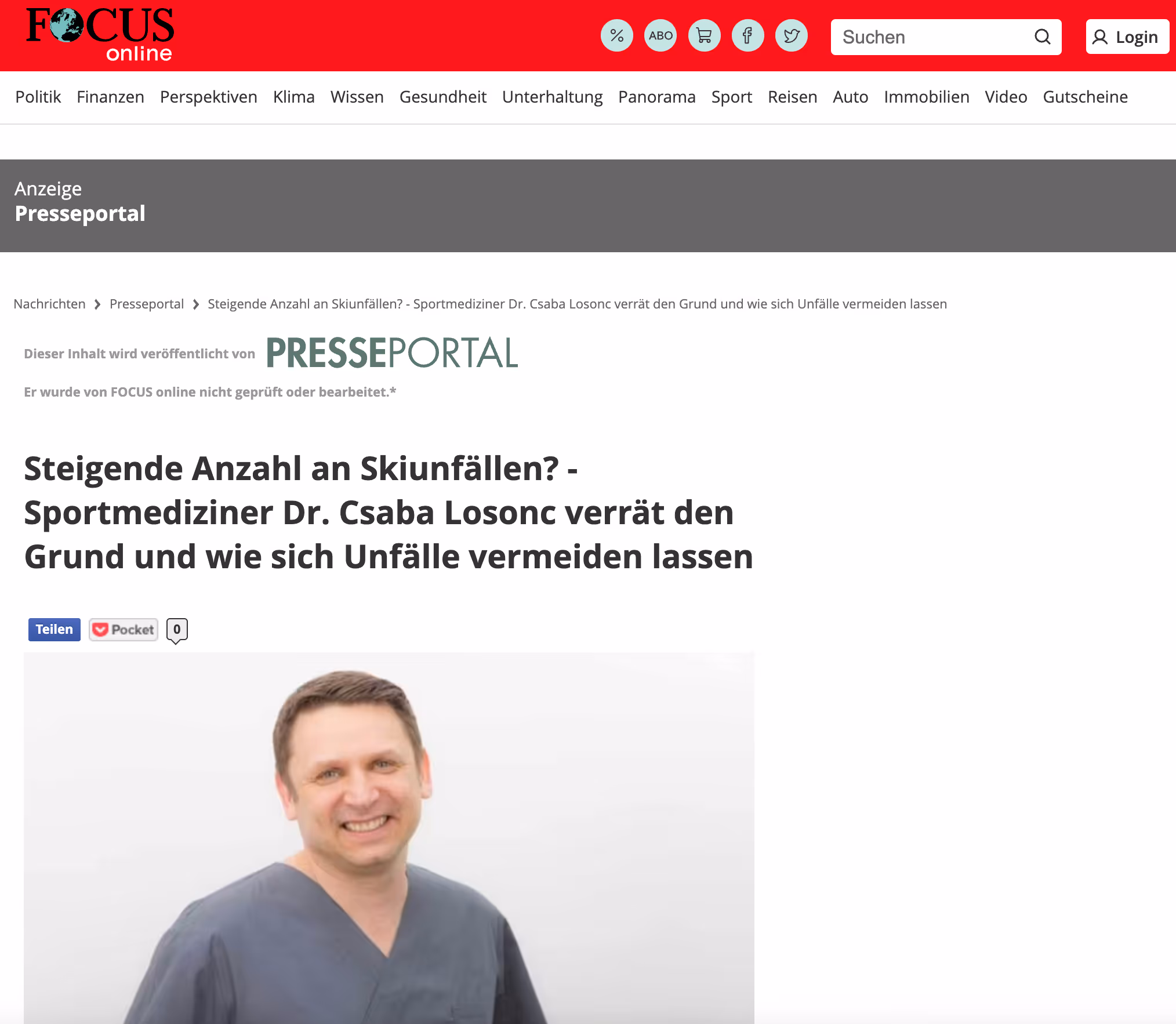 Orthopäde und Sportmediziner Dr. Csaba Losonc & sein Team