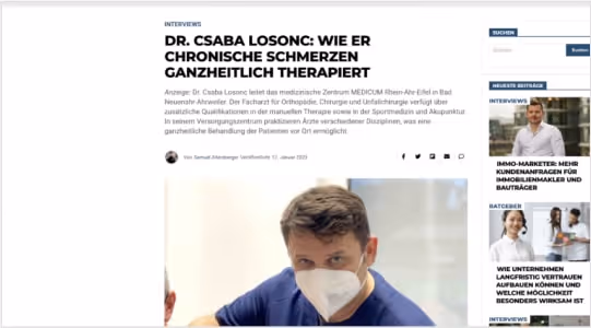 Störend war allerdings, dass nur Privatpatienten in den Genuss der Präventionsmedizin kamen. Somit beschloss ich 2017, die Praxis zu erweitern und eine Kassenzulassung zu erwerben. Mein Team wuchs und der erste Arzt kam dazu. 2019 waren wir schon drei Ärzte und hatten ein Team von 15 Mitarbeitern. 2020 eröffnete ich FOKUS:Leistungsmedizin, um noch mehr orthopädische Check-Ups anzubieten. Inzwischen waren es 30 Mitarbeiter und sechs Ärzte sowie ein weiterer Standort.